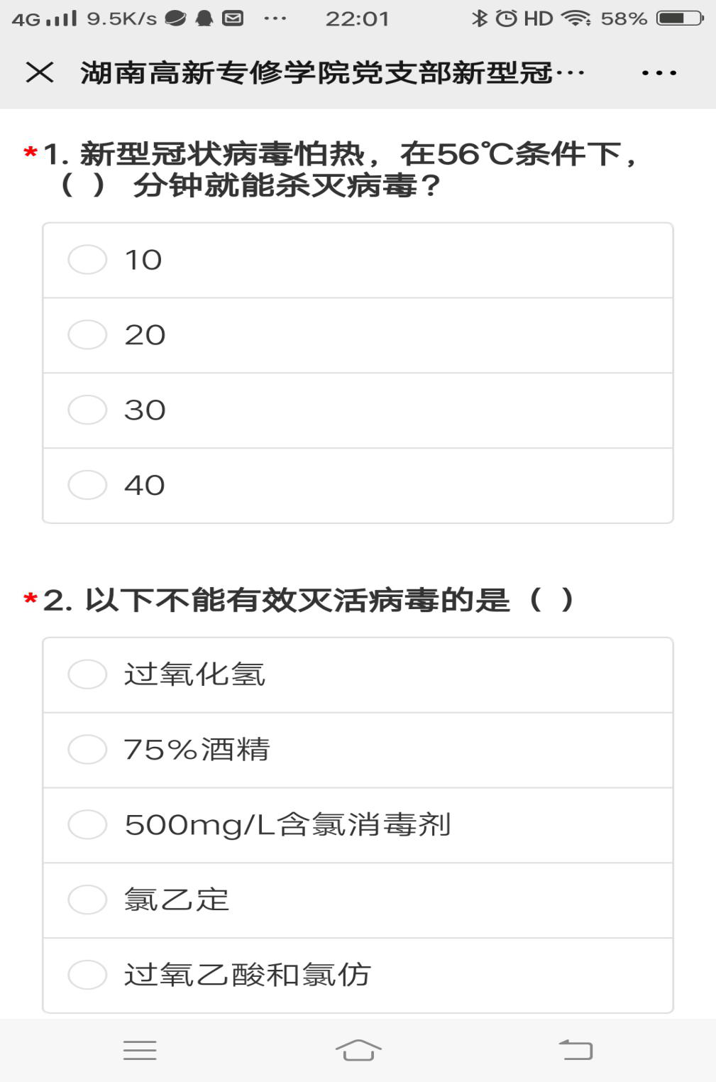 為(wèi)檢測與鞏固黨員(yuán)防疫知(zhī)識,讓黨員(yuán)和(hé)入黨積極分子(zǐ)在自我防疫知(zhī)識達标的(de)前提下(xià)再發揮黨員(yuán)先鋒模範作用(yòng),正确引導學校老(lǎo)師(shī)在抗疫戰争的(de)最後階段加強防範意識,支部黨員(yuán)與入黨積極分子(zǐ)參與了(le)一(yī)場(chǎng)線上(shàng)理(lǐ)論測試活動,此次題目類型涵蓋填空(kōn↔g)題、多(duō)選題、判斷題、單選題四種題型,圍繞新冠狀病毒肺炎進行(xíng)提問(wèn)。