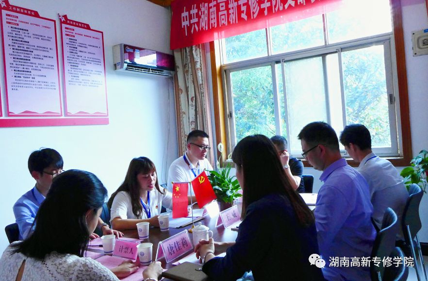 2019年(nián)4月(yuè)25日(rì)下(xià)午4點,湖(hú)南(nán)省高新專修學院在黨建活動室召開(kāi)了(le)湖南商貿經濟管理專修學院支部委員✘(yuán)會(huì)成立大(dà)會(huì)暨揭牌儀式。長(cháng)沙市(shì)教育局民(mín)>辦教育處副處長(cháng)王威、湖南商貿經濟管理專修學院黨建指導員(yuán)唐佳莉、院長(cháng)陳林(lín)、副院長(cháng)劉勁楓以及黨員(yuán)代表等11人(rδén)共同出席了(le)此次會(huì)議(yì)。此次大(dà)會(huì)在莊嚴的(de)《中華人民(mín)共和(hé)國(guó)國(guó)歌(gē)》聲中開(kāi)±幕,大(dà)會(huì)由黨建指導員(yuán)唐佳莉主持。