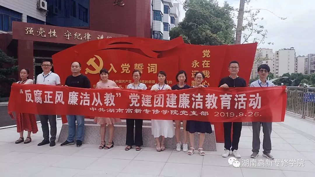 為(wèi)深入開(kāi)展黨風(fēng)廉政建設,加強©教師(shī)隊伍管理(lǐ),學院黨支部結合上(shàng)級黨組織的(de)要(yào)求,進一(yī)步開("kāi)展師(shī)德師(shī)風(fēng)教育專項整治活動。2019年(nián)8月(yuè)26日(rì)下(xià)午,學院黨支部、工(g☆ōng)會(huì)組織黨員(yuán)、入黨積極份子(zǐ)、學院管理(lǐ)層開(kāi)展“反腐正風(fēng) 廉潔從(cón✔g)教”——黨建帶團建廉潔教育黨日(rì)活動。在支部書(shū)記王基權同志(zhì)的(de)帶領下(xià),學院黨建、團建的(de)教★職工(gōng)代表共十二人等到(dào)長(cháng)沙市(shì)廉政文化教育警示基地(dì)參觀學習(xλí)。