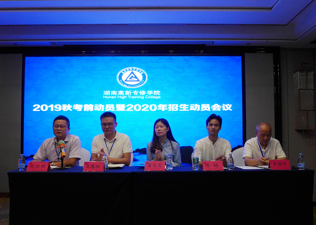 2019年(nián)9月(yuè)27日(rì)下(xià)午三點,湖南商貿經濟管理專修學院在紅(hóng)星國(guó)際≤大(dà)酒店(diàn)韶山(shān)廳會(huì)議(yì)室隆重召開(kāi)2019秋考前動員(y uán)暨2020年(nián)招生(shēng)動員(yuán)會(huì)議(yì)!首肯教育、永誠教育等30多(duō)家 (jiā)合作單位及我院全體(tǐ)教職員(yuán)工(gōng)逾百人參加了(le)此次會(huì)議(yì)¶。